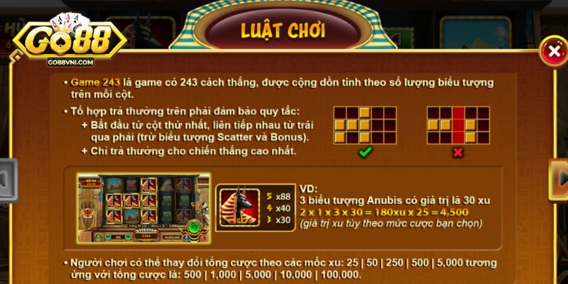 Trò chơi này có 243 cách để giành chiến thắng. Hệ thống sẽ tính cộng dồn số lượng các biểu tượng trên mỗi cột để trả thưởng. Ngoài ra, bạn cần đáp ứng đầy đủ những quy tắc như: