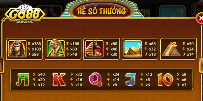 Bảng hệ số nhân của trò chơi Bí Mật Cleopatra