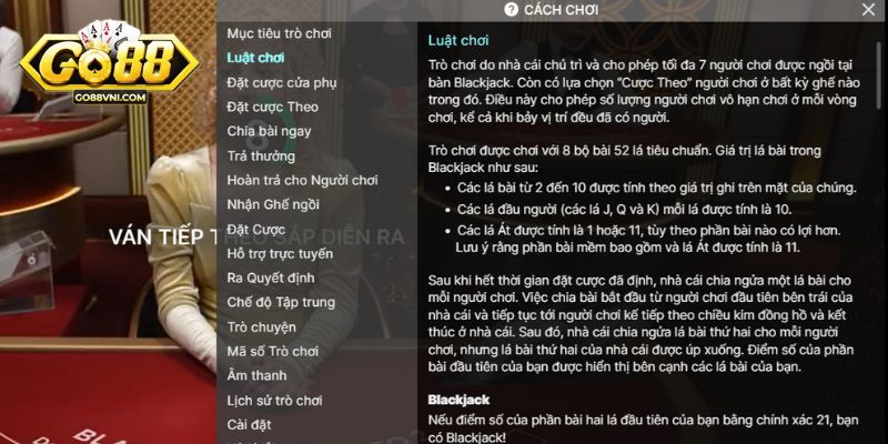 Luật chơi Blackjack tại nhà cái Go88 như thế nào?