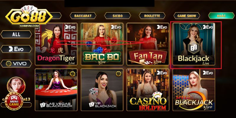 Blackjack tại Go88 là game bài giải trí online được nhiều người chơi lựa chọn. Nếu bạn hành động thông minh, có được tổng điểm cao hơn điểm của nhà cái thì hệ thống sẽ cộng thưởng giá trị.