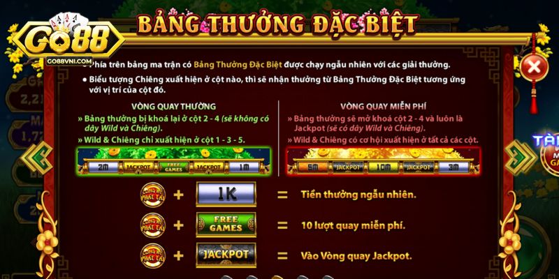“Bảng thưởng đặc biệt” xuất hiện trên ma trận một cách ngẫu nhiên và ẩn chứa đằng sau đó là phần thưởng hấp dẫn. Người chơi sẽ nhận được tiền thưởng ứng với biểu tượng Chiêng. Cụ thể: