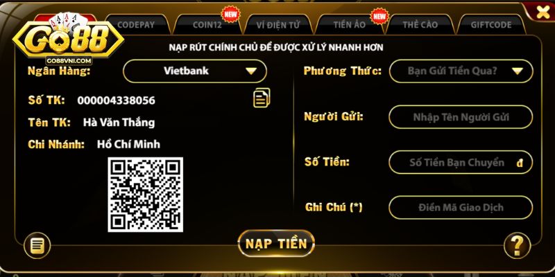 Nạp tiền tại Go88 bằng ngân hàng