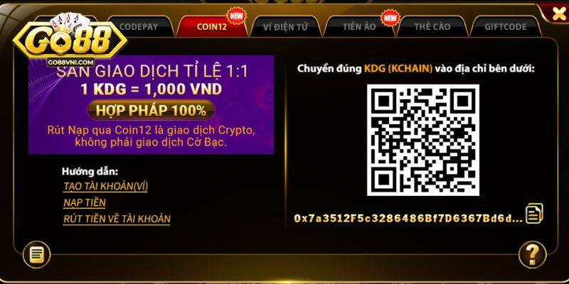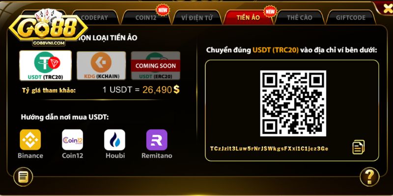 Nạp tiền tại Go88 bằng tiền ảo
