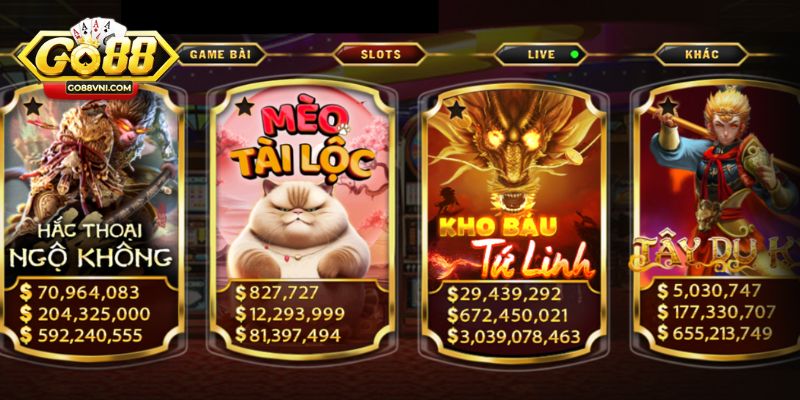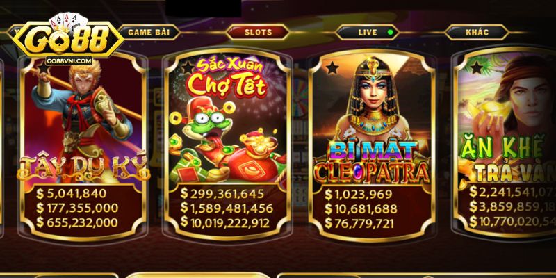 - Tiền thưởng nổ hũ vô cùng lớn: Slots online Go88 tích lũy hũ xu, cùng người chơi khám phá giải jackpot với giá trị tiền tỷ.