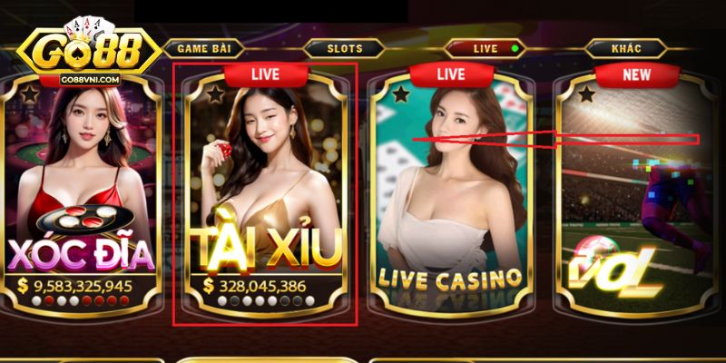 - Bước 2: Tại giao diện chính thức, hãy vào mục Live => Chọn game Tài Xỉu => Tìm hiểu các quy luật được hệ thống cung cấp và bắt đầu cá cược hấp dẫn, nhận tiền thưởng hợp lệ.